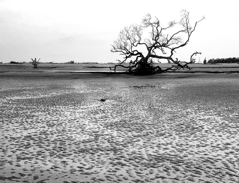 I like the starkness with its feeling of quiet and solitude. The image is calming at first glance but, as I look longer, I notice the textures of the sand and tree and feel more intrigued to explore.