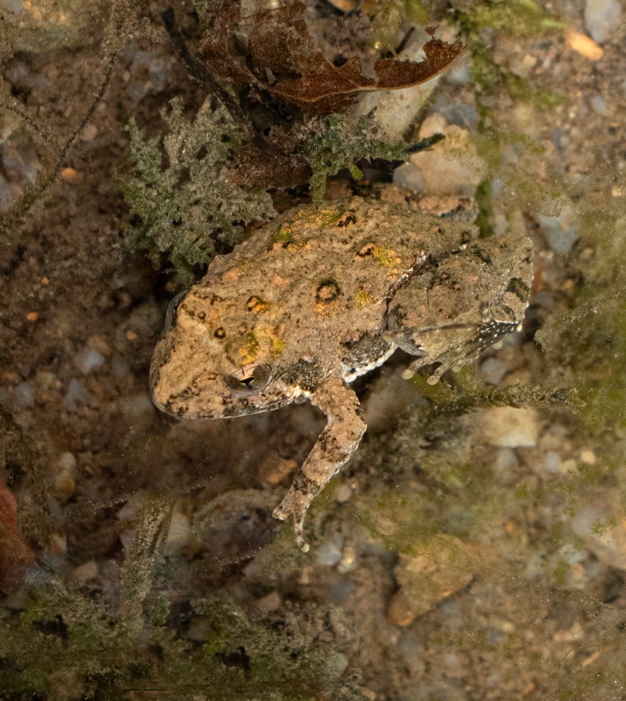 We had a great trip to Red Top Mountain State Park in spite of the air being thick with spring pollen. We kept our walk short and focused on the upper end of a small creek that popped up out of a spring. We were in for treat as there were a lot of small frogs to be seen.