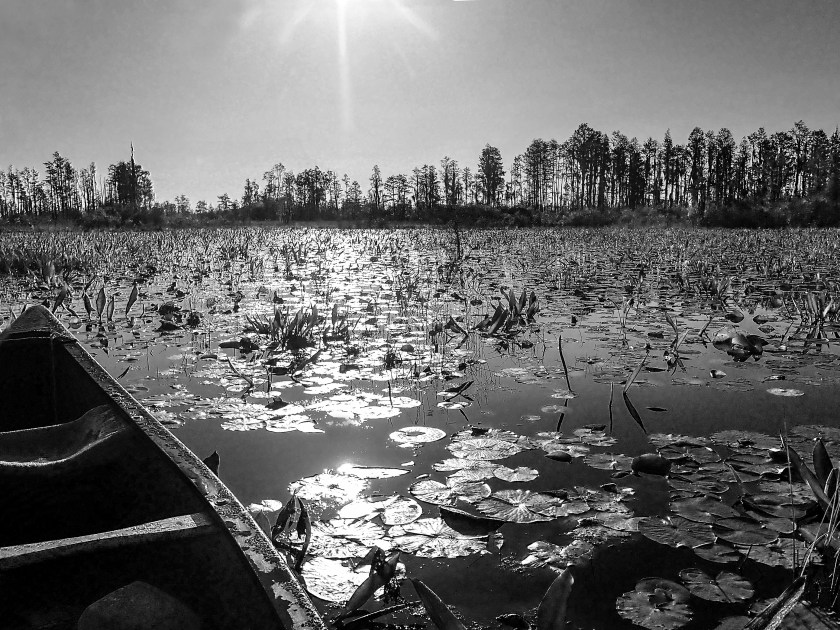 After we set up camp and a brief rest, we paddled to Buzzards Roost Lake. The lake had quite a few lily pads which provided a dramatic aquatic landscape.