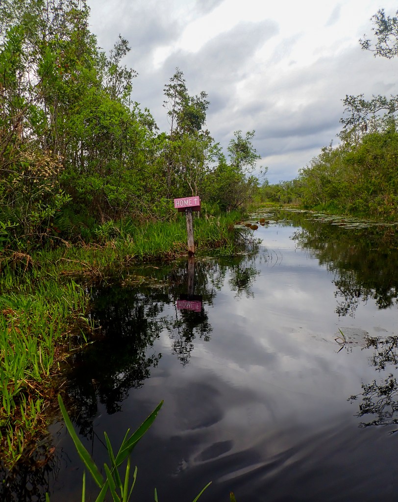 The sign point to ‘Home’, but we still had one more night in the swamp ahead of us.