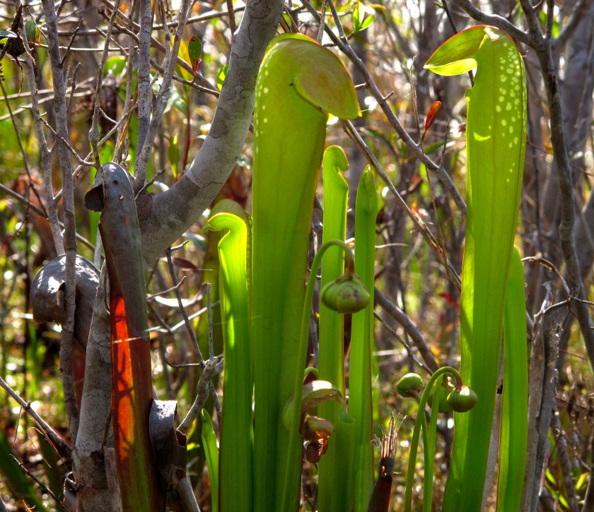 Pitcher plants are carnivorous, trapping and digesting insects, to make up for the poor nutrients in the soil.