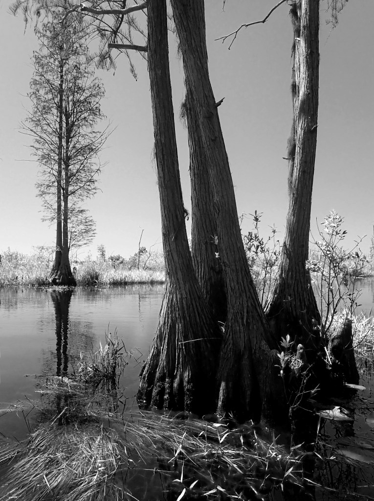 Bald cypresses are plentiful in the swamp, and make interesting photographic subjects.