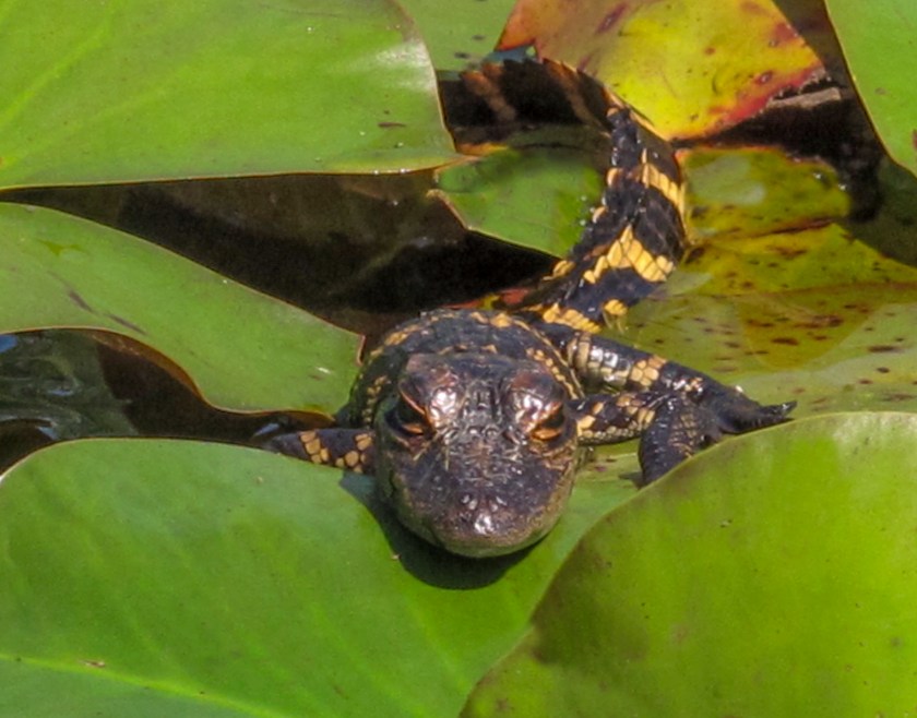 There are an abundance of alligators in the swamp. Alligators were once on the endangered species list, but made a dramatic recovery.